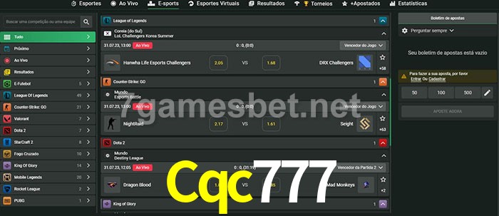 O Cqc777 oferece uma grande seleção de opções de apostas em e-sports com probabilidades competitivas